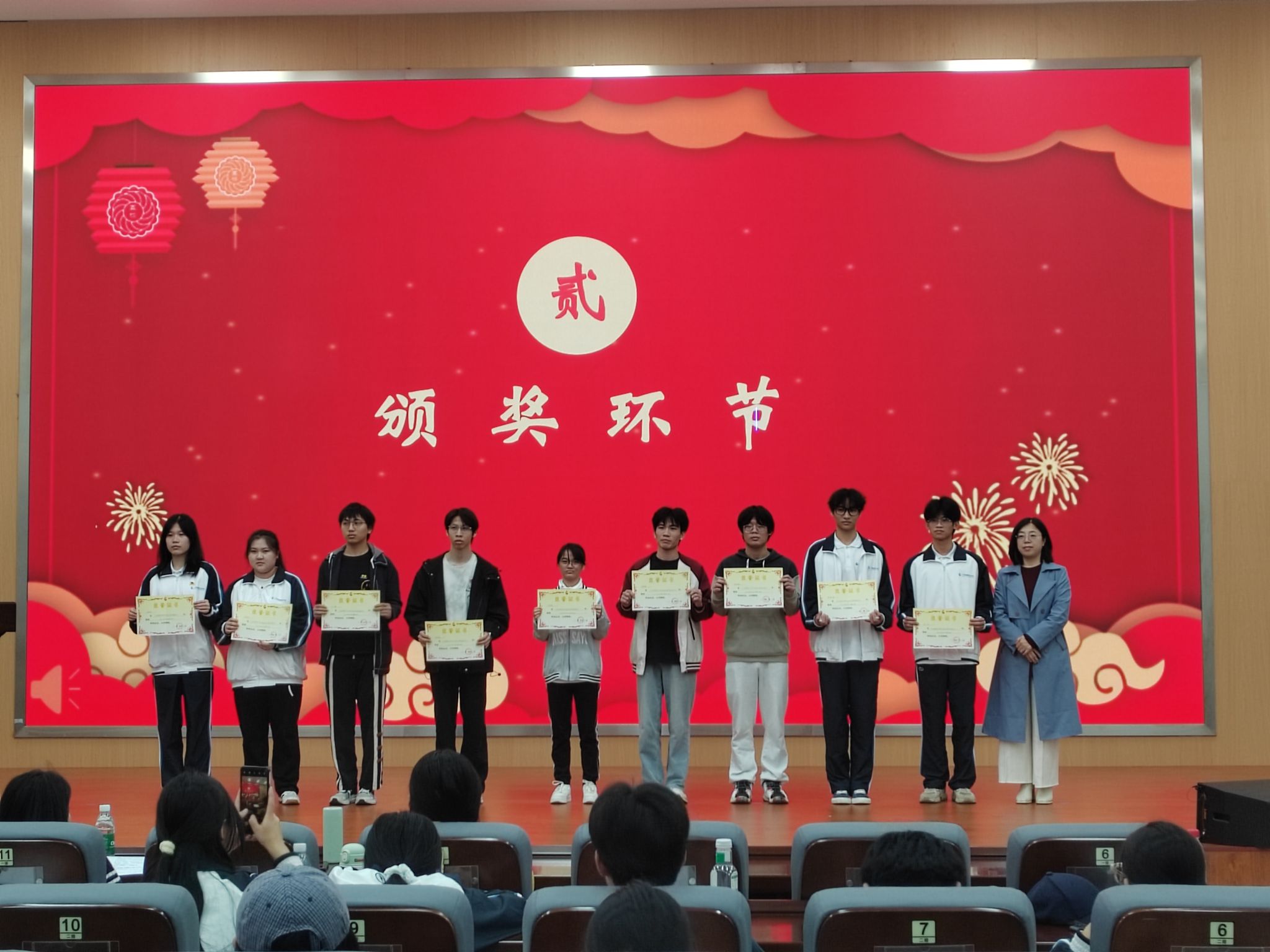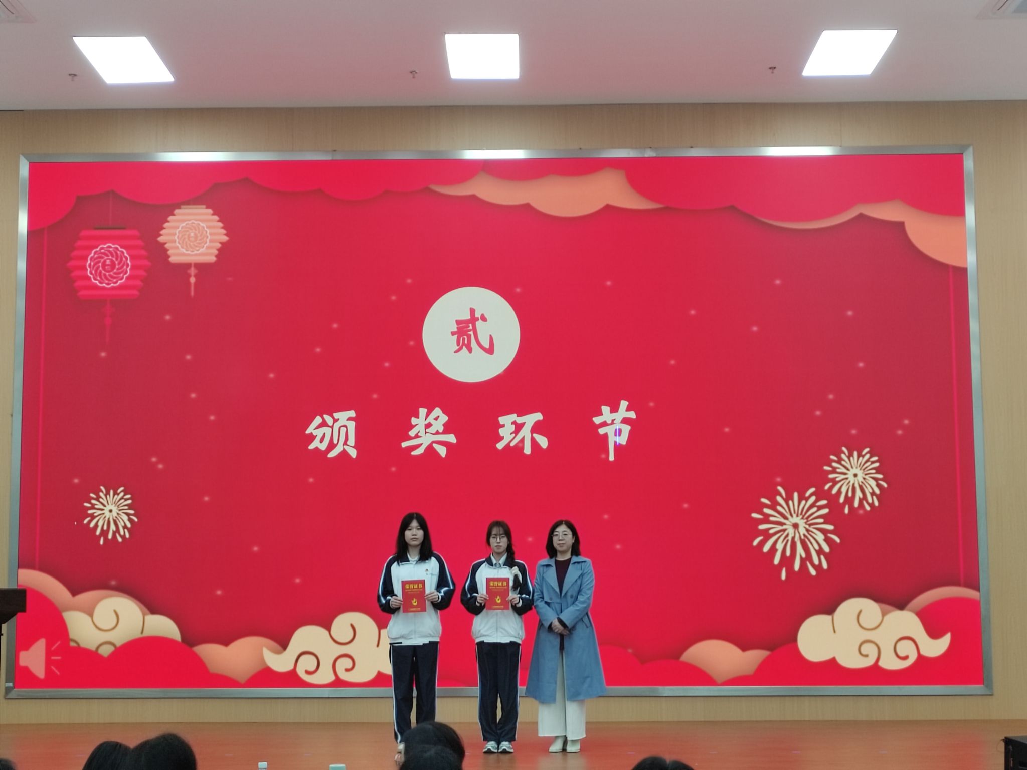 △表彰现场和学生代表发言